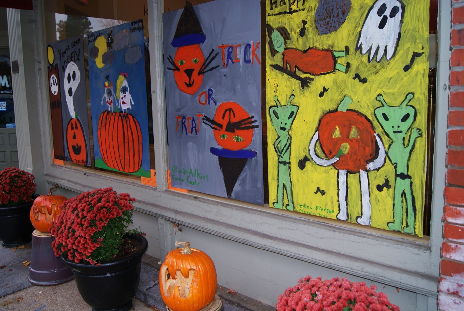 Every year, the fifth graders paint the windows downtown for Halloween. Isn't it festive?