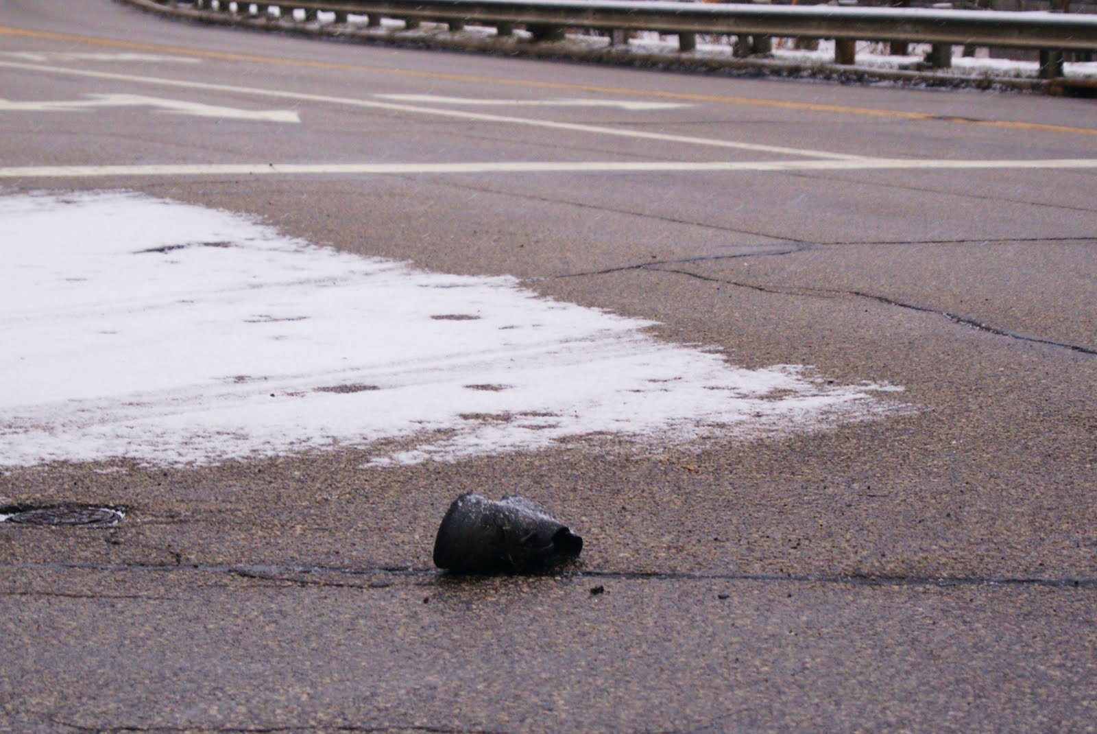 I saw this the other morning near Griffin's school and the funny thing about it is...it's still there!...two days later, and after the roads have been plowed a couple of times.