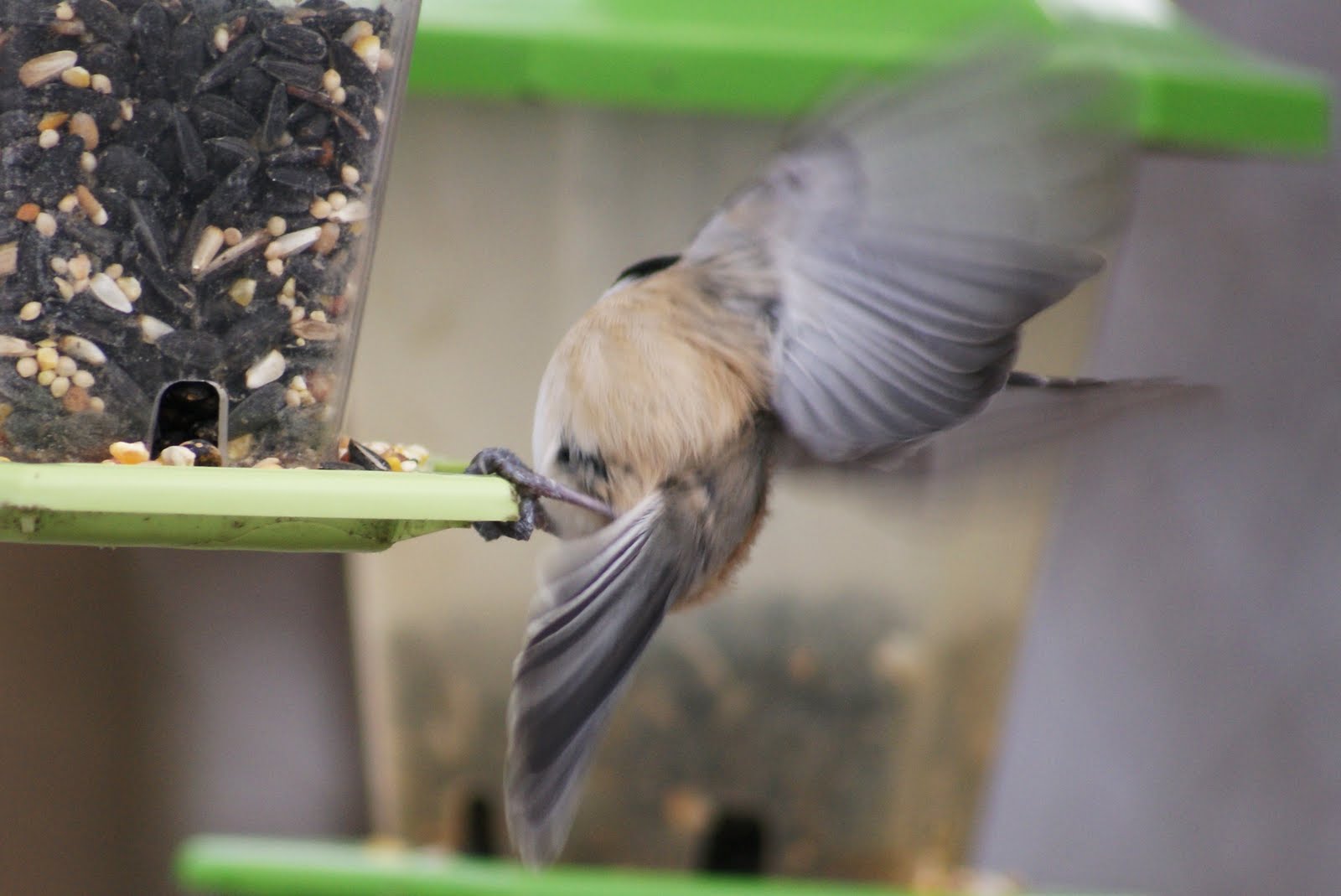 I love this photo of the chickadee and the out-of-focus cardinal in the distance. I don't know why though. I looked at it for quite a while, trying to figure out just what it is I like about it. It doesn't have great composition...it's kind of messy...like life, I guess.