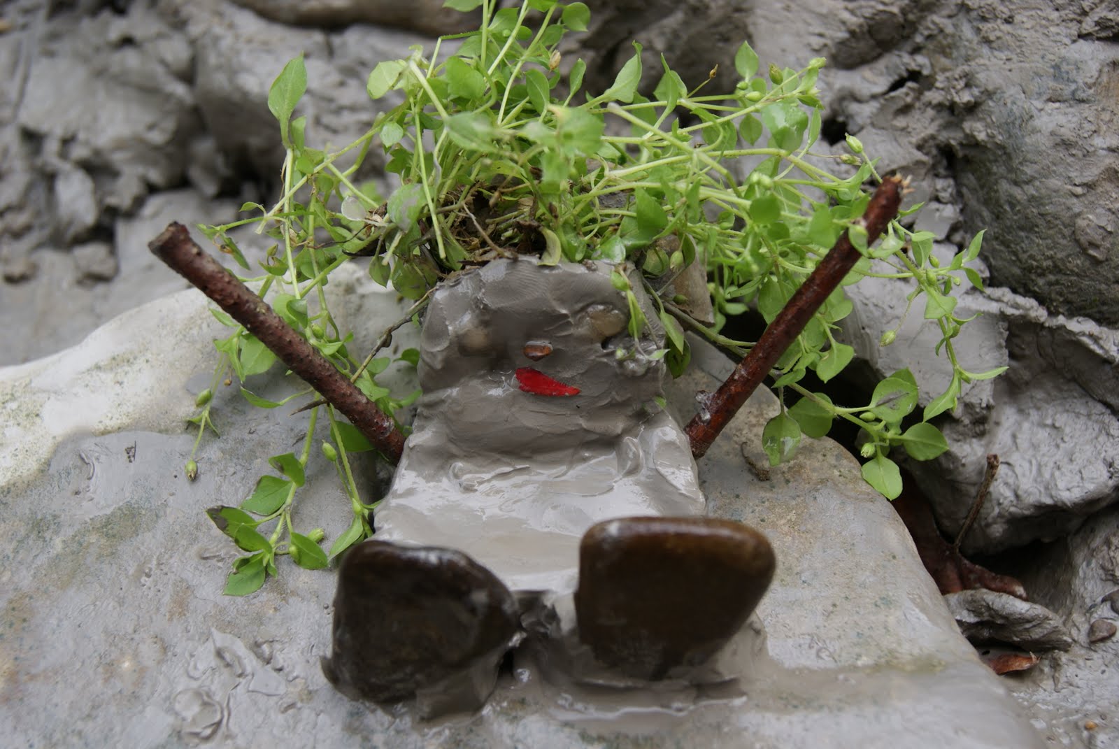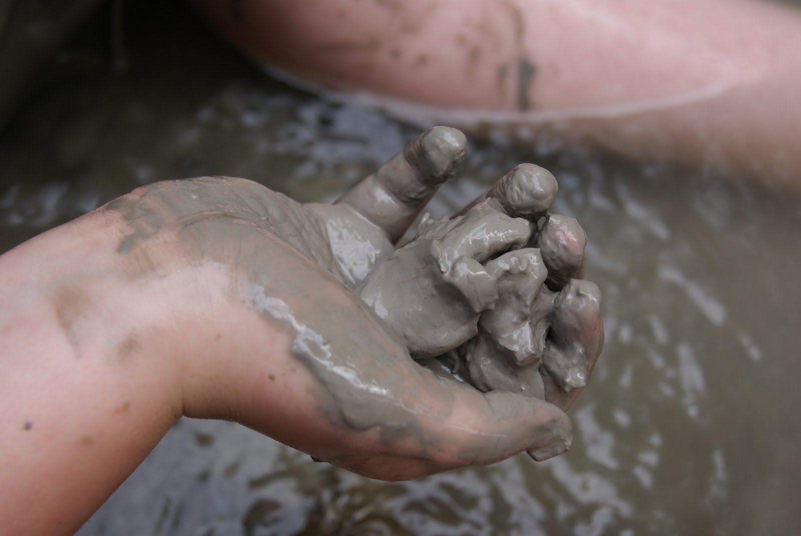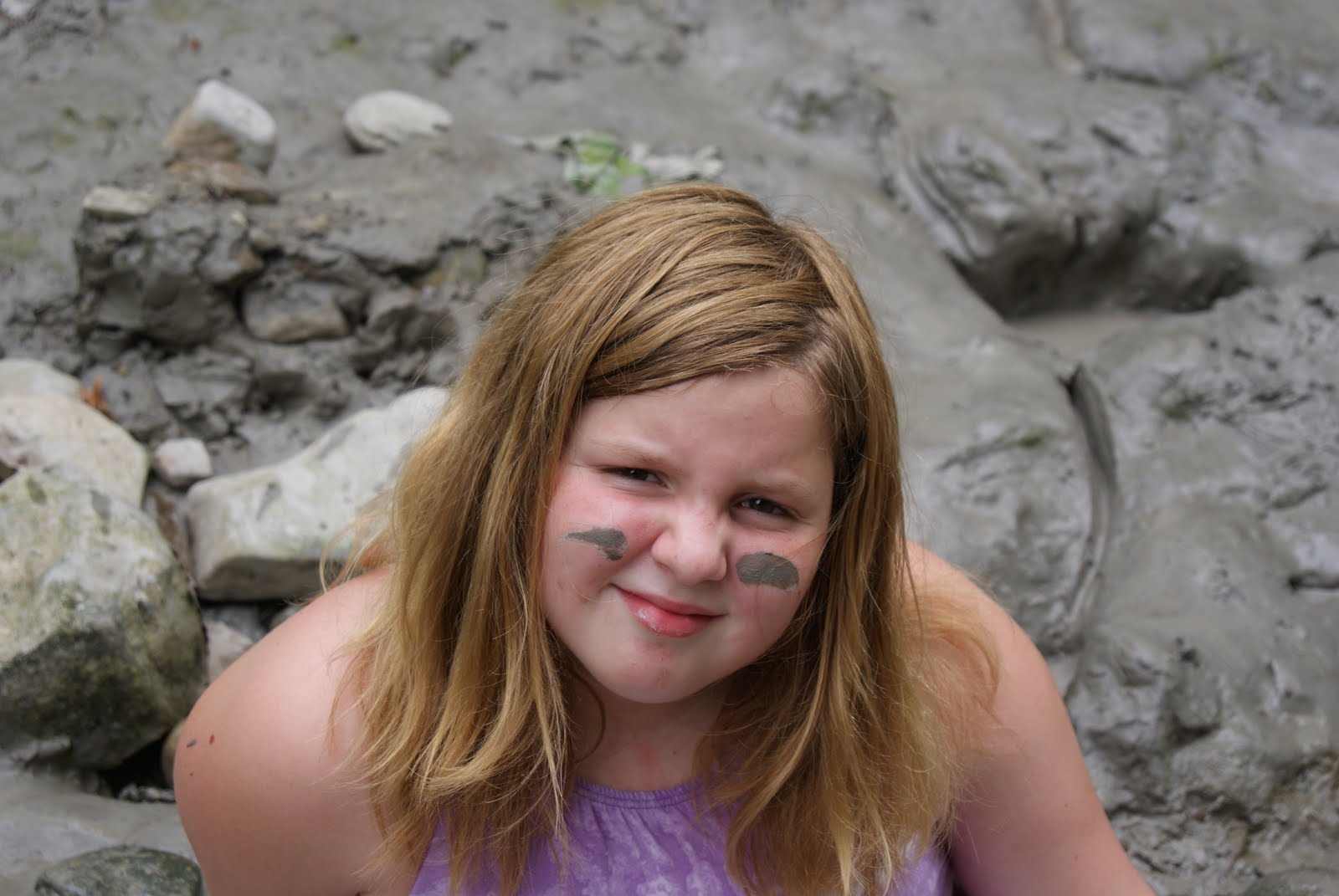 I felt like I was breathing in happiness the whole time we were there today. Griffin sat down in the middle of the water and threw rocks for what seemed like forever...the perfect thing for a demolition man to do! He didn't want to get dirty. The girls, on the other hand, couldn't resist the "wall of clay".